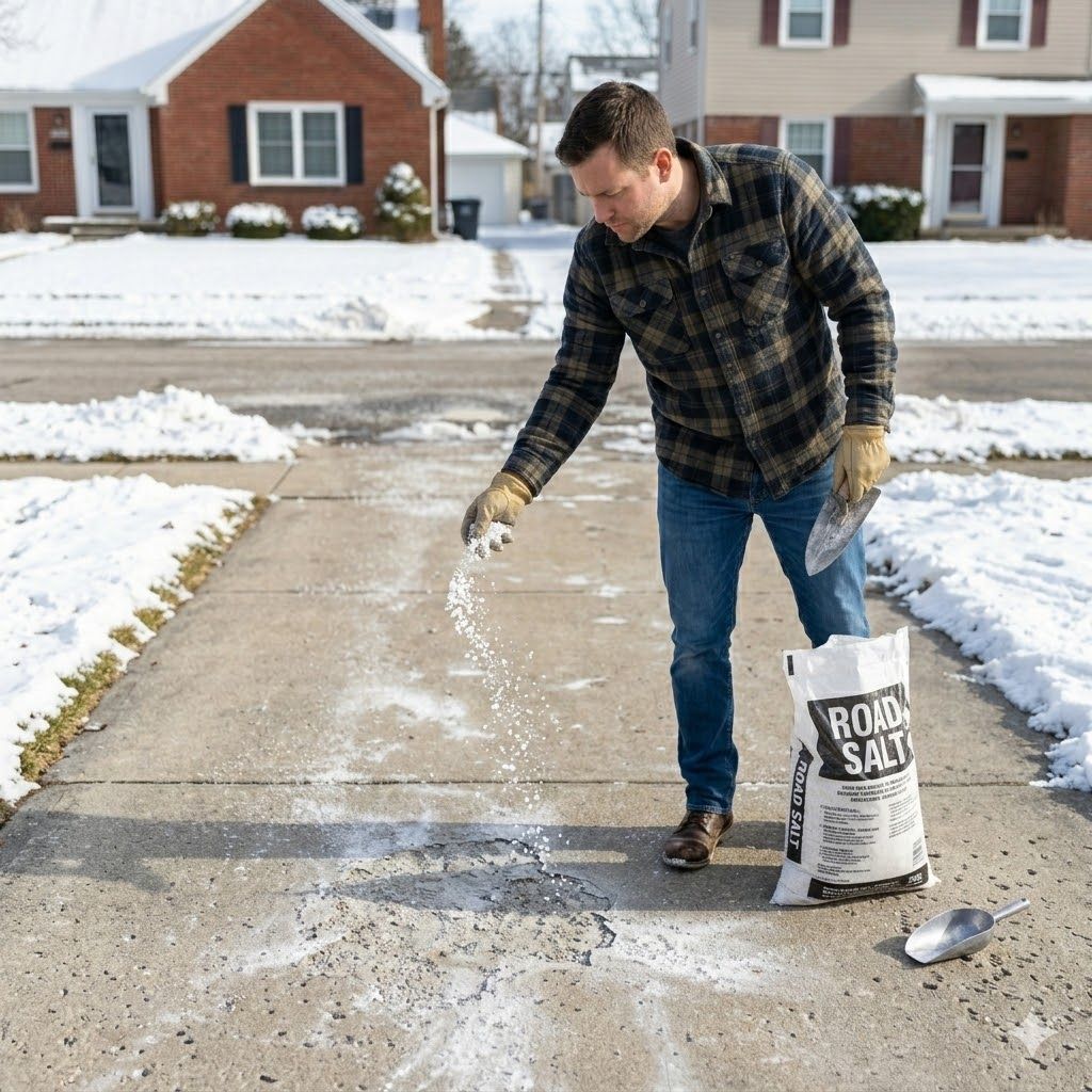 We’ve all been there. A big Michigan blizzard hits, you spend three hours shoveling, and then you reach for the big blue bag of rock salt. It feels like a victory when you hear that "crackle" and see the ice start to melt. But while you’re making your path safe to the car, that salt is starting a chemical and physical war with your Concrete Driveways.