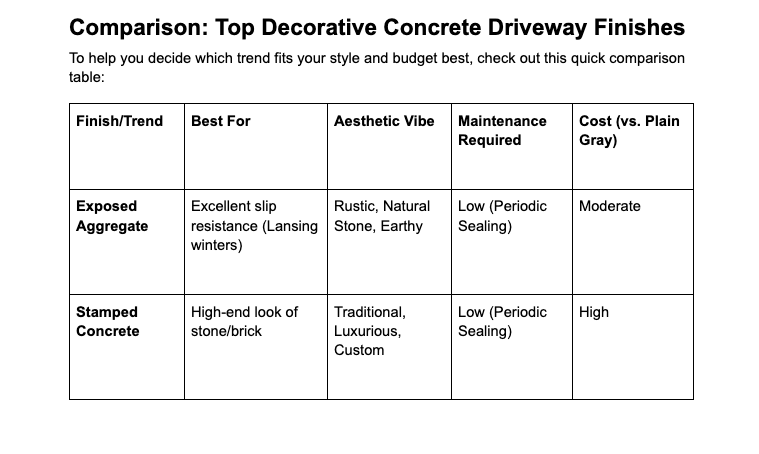 Ready to find the perfect decorative Concrete Driveway trend for your Lansing home?